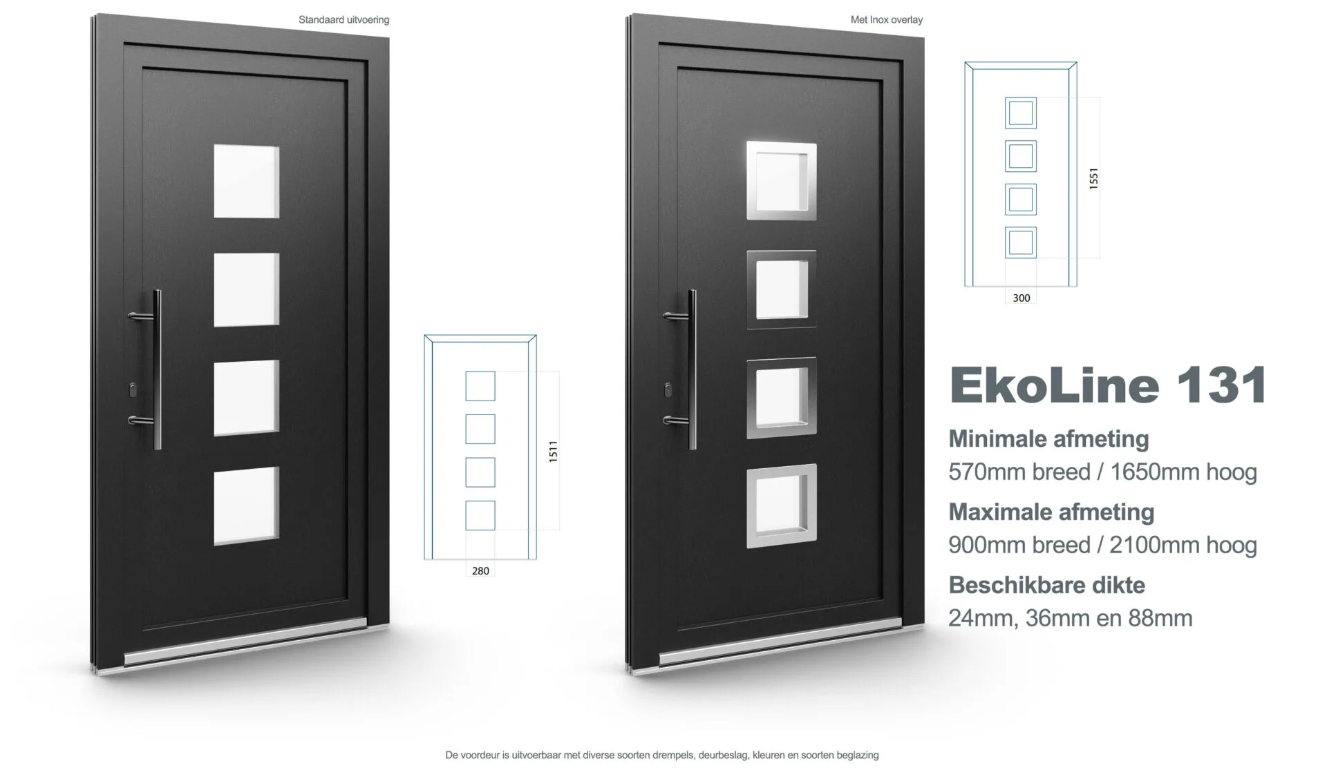 Aluplast kunststof voordeur model EkoLine 131. Verkrijgbaar in wit (RAL 9016) of crème (RAL 9001), optioneel met diverse folies en Inox accenten.