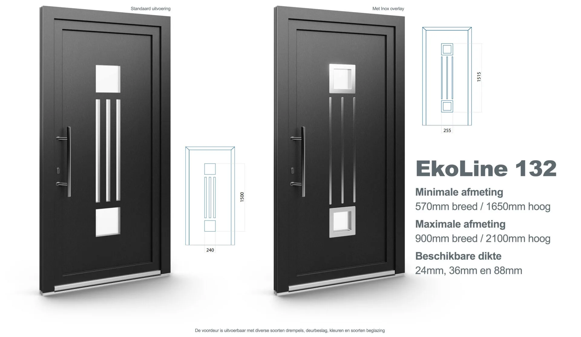 Aluplast kunststof voordeur model EkoLine 132. Verkrijgbaar in wit (RAL 9016) of crème (RAL 9001), optioneel met diverse folies en Inox accenten.