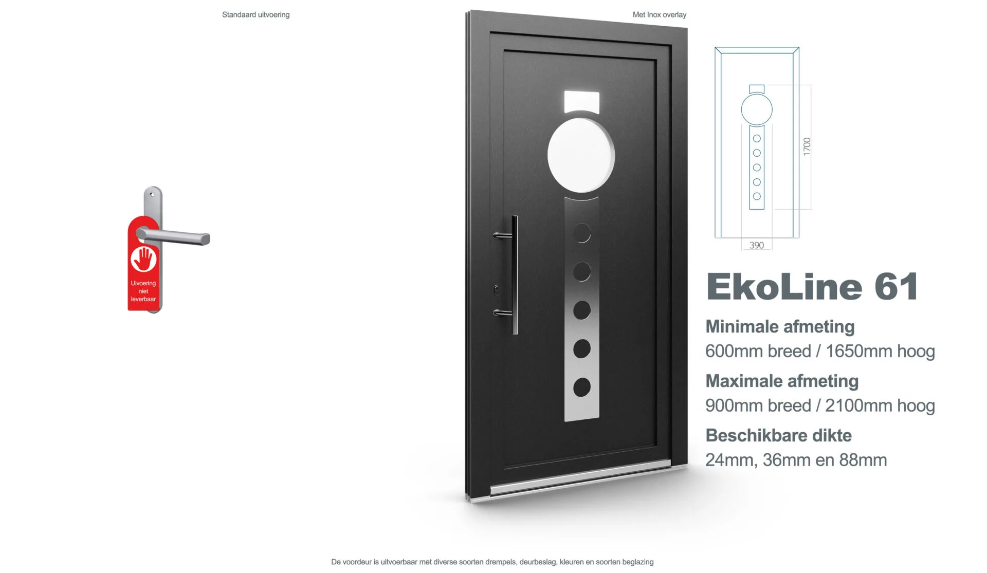 Aluplast kunststof voordeur model EkoLine 61. Verkrijgbaar in wit (RAL 9016) of crème (RAL 9001), optioneel met diverse folies en Inox accenten.