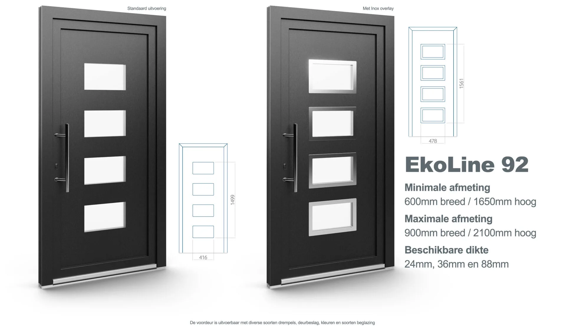 Aluplast kunststof voordeur model EkoLine 92. Verkrijgbaar in wit (RAL 9016) of crème (RAL 9001), optioneel met diverse folies en Inox accenten.